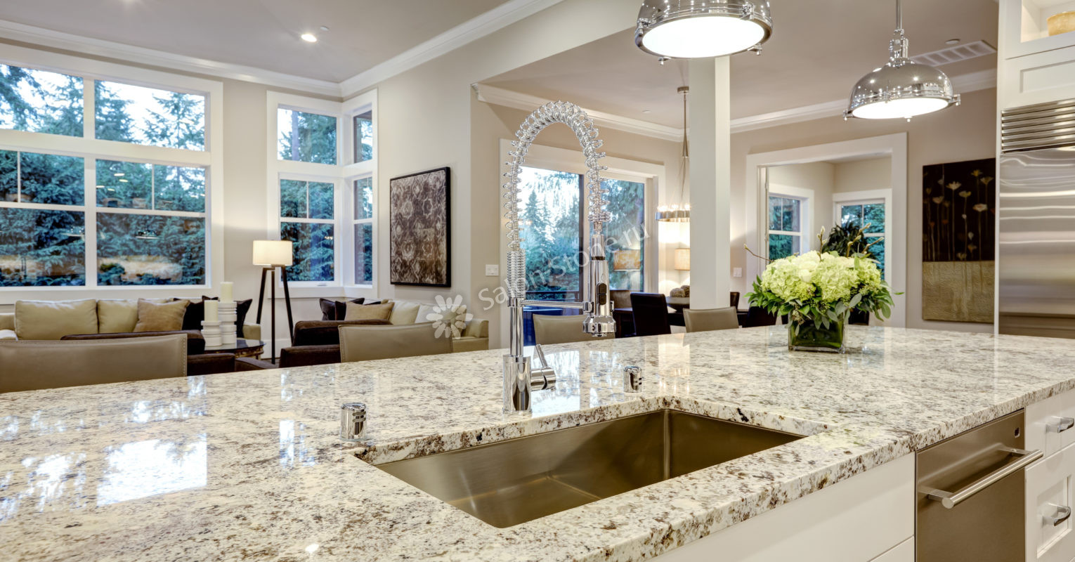 - Хотя натуральный материал и славится своей долговечностью, за ним необходим регулярный и аккуратный уход. Некоторые виды камня требуют специальной обработки для предотвращения пятен от жидкостей, а также периодической импрегнации защитными средствами.
